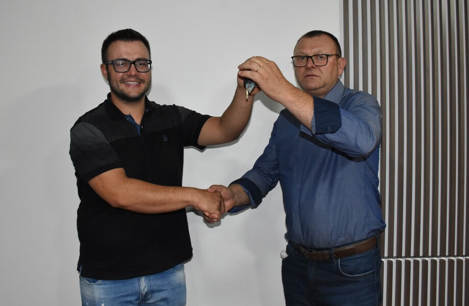 O ex-presidente da Câmara de Vereadores, Ivaldino Frizon, em ato simbólico, realizou a entrega das chaves da Sede da Câmara ao novo Presidente, Dener Zanella. Ainda, foi realizada a entrega de um mimo à Secretária da pasta, Paula Meotti, como forma de agradecimento pelo período de trabalho junto à Câmara.
